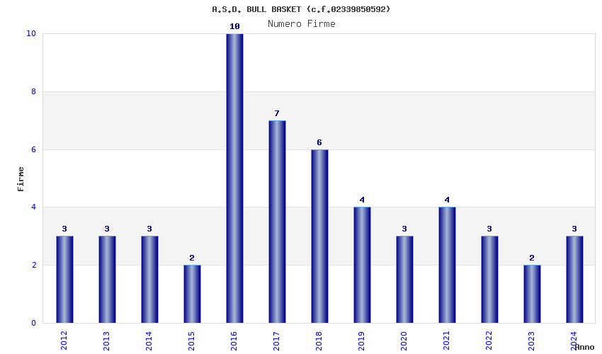 | Anno | Firme | Importi | Media | Naz. | Reg. | Prov. | Comu. |