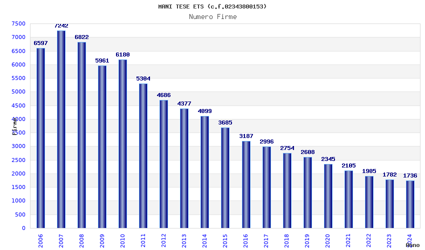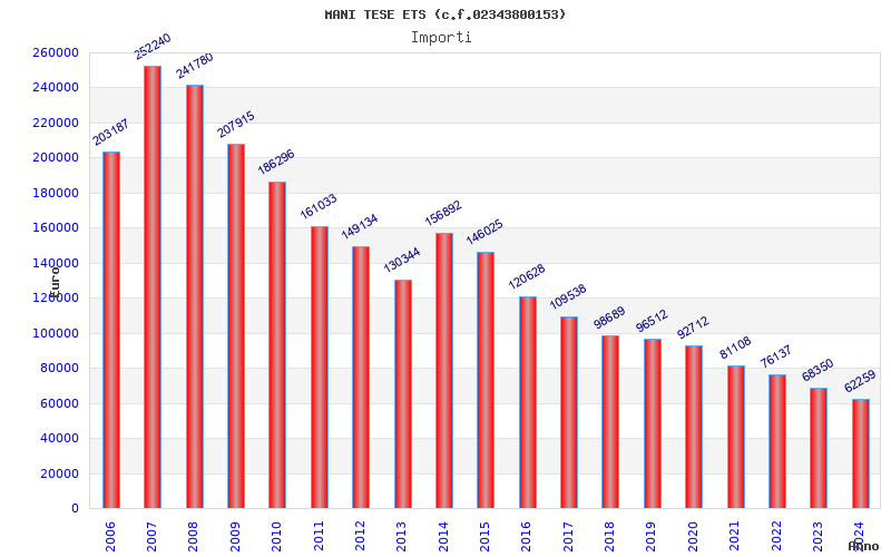 | Anno | Firme | Importi | Media | Naz. | Reg. | Prov. | Comu. |