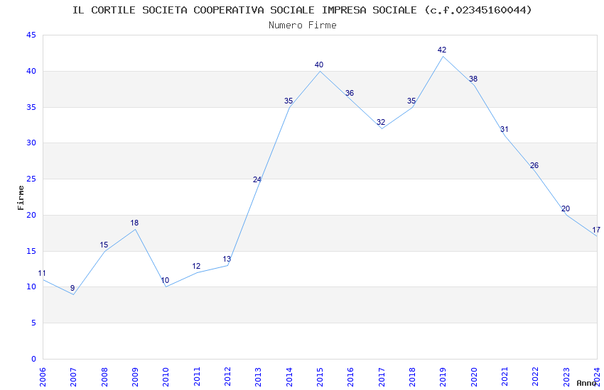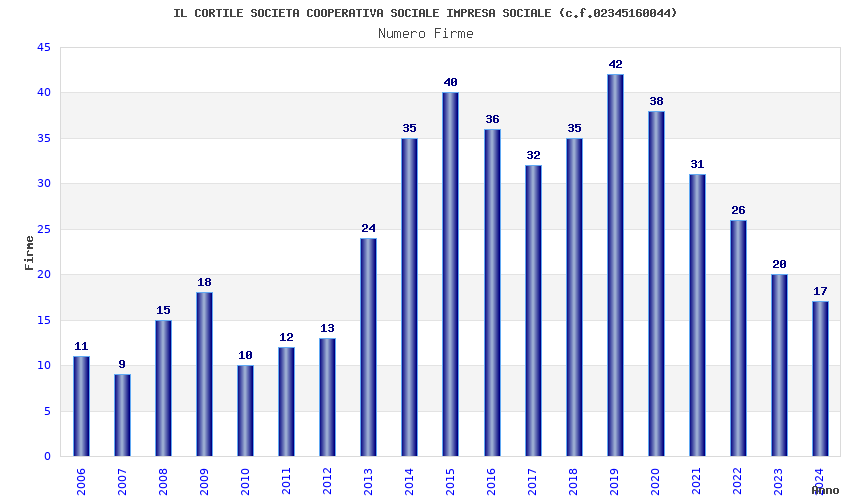 | 2019 | 42 | 634,49 | 15,11 | 42.620 | 3.681 | 617 | 8 |