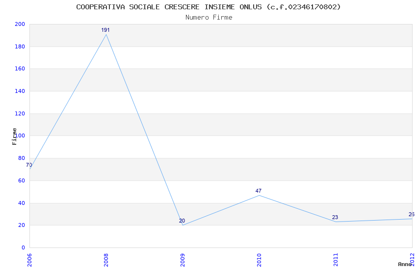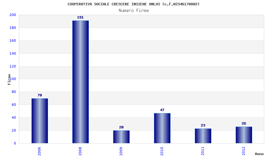 | Anno | Firme | Importi | Media | Naz. | Reg. | Prov. | Comu. |