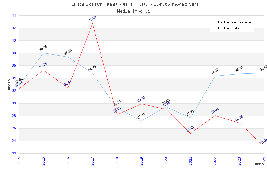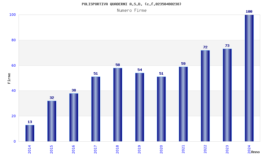| Anno | Firme | Importi | Media | Naz. | Reg. | Prov. | Comu. |