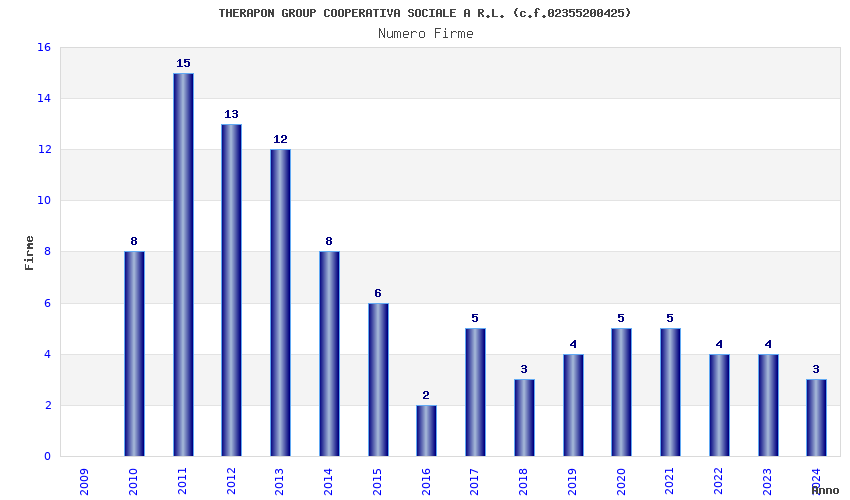 | Anno | Firme | Importi | Media | Naz. | Reg. | Prov. | Comu. |