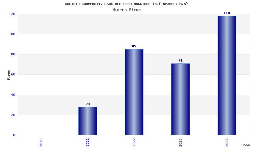 | Anno | Firme | Importi | Media | Naz. | Reg. | Prov. | Comu. |