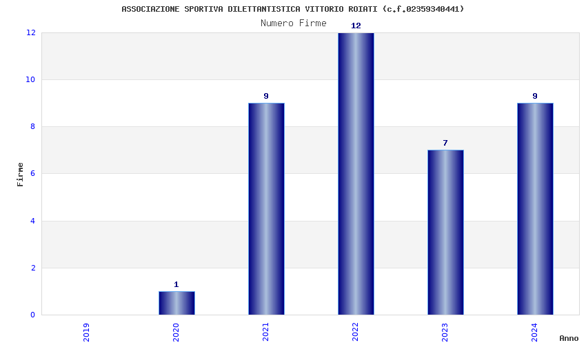 | Anno | Firme | Importi | Media | Naz. | Reg. | Prov. | Comu. |
