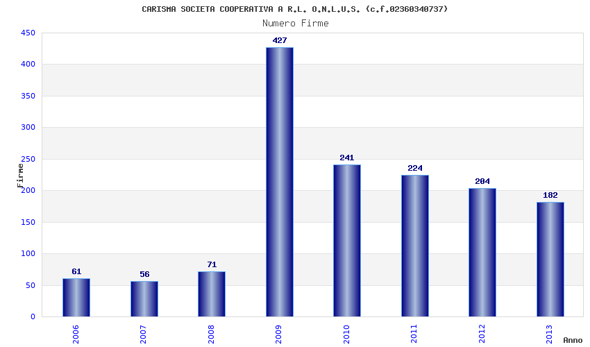 | Anno | Firme | Importi | Media | Naz. | Reg. | Prov. | Comu. |