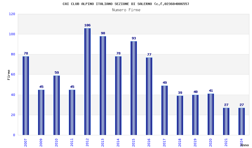 | 2014 | 78 | 3.435,63 | 44,05 | 15.011 | 829 | 171 | 49 |