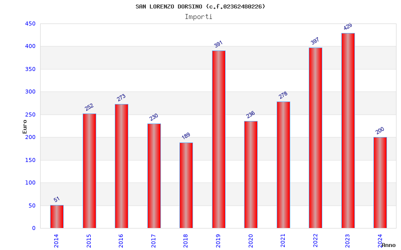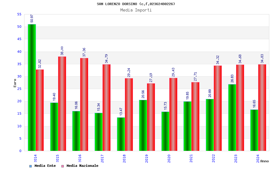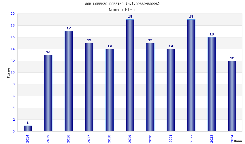 | Anno | Firme | Importi | Media | Naz. | Reg. | Prov. | Comu. |