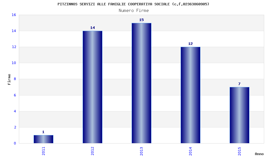 | Anno | Firme | Importi | Media | Naz. | Reg. | Prov. | Comu. |