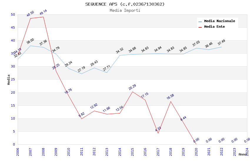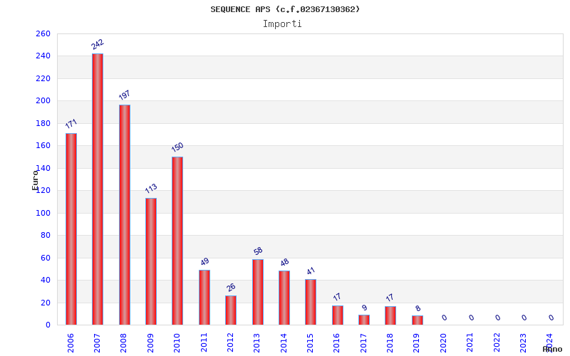 | Anno | Firme | Importi | Media | Naz. | Reg. | Prov. | Comu. |