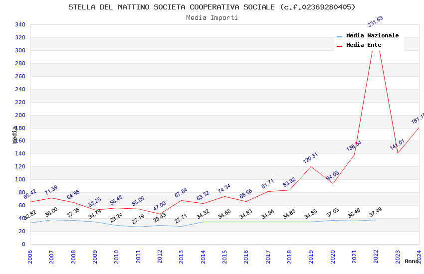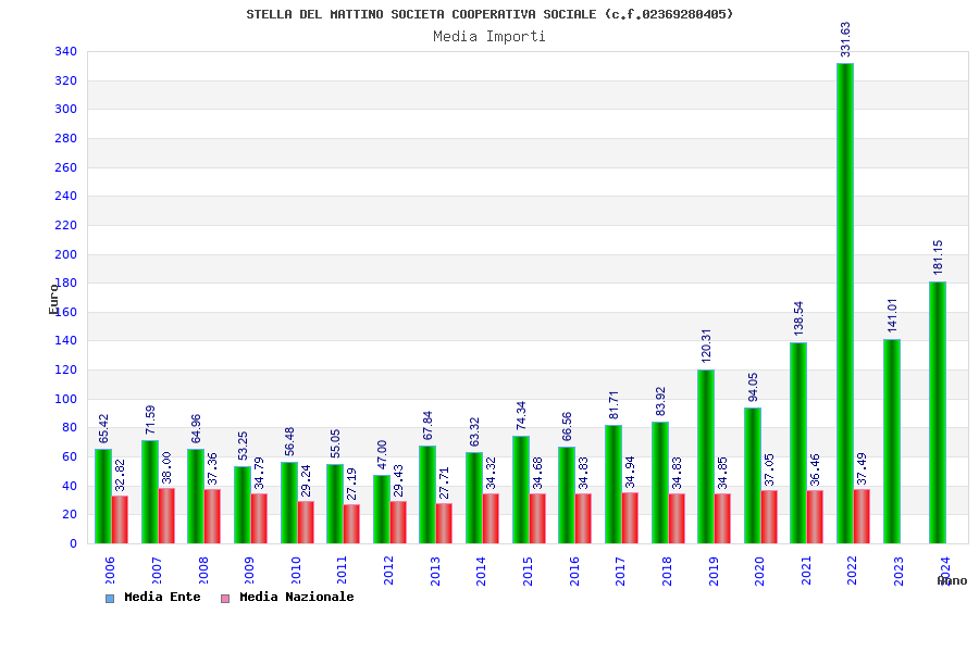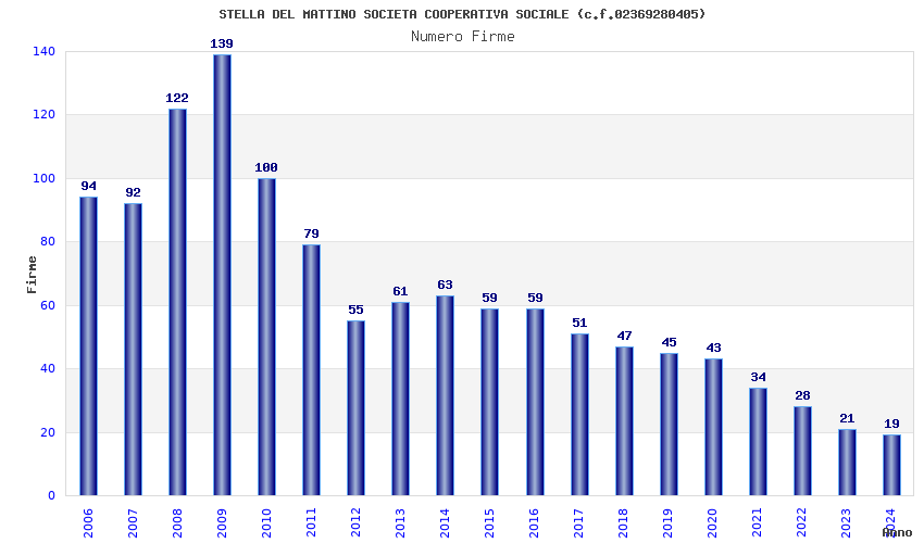| Anno | Firme | Importi | Media | Naz. | Reg. | Prov. | Comu. |