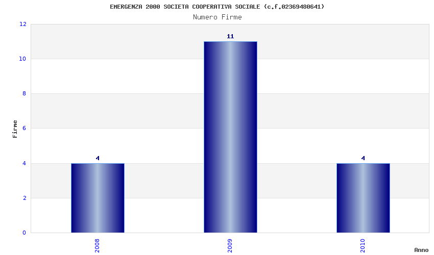 | Anno | Firme | Importi | Media | Naz. | Reg. | Prov. | Comu. |