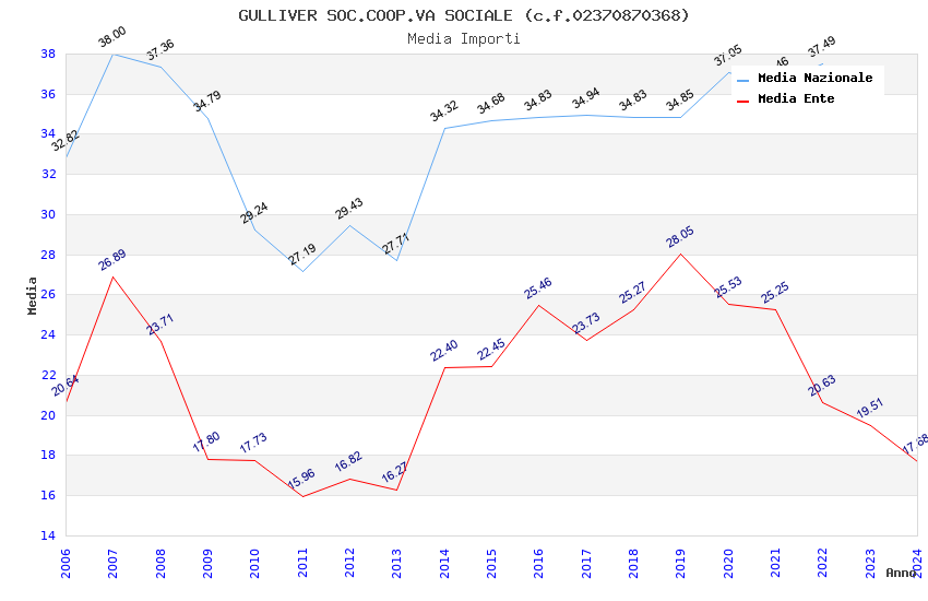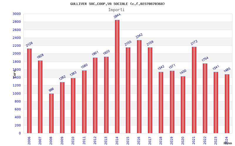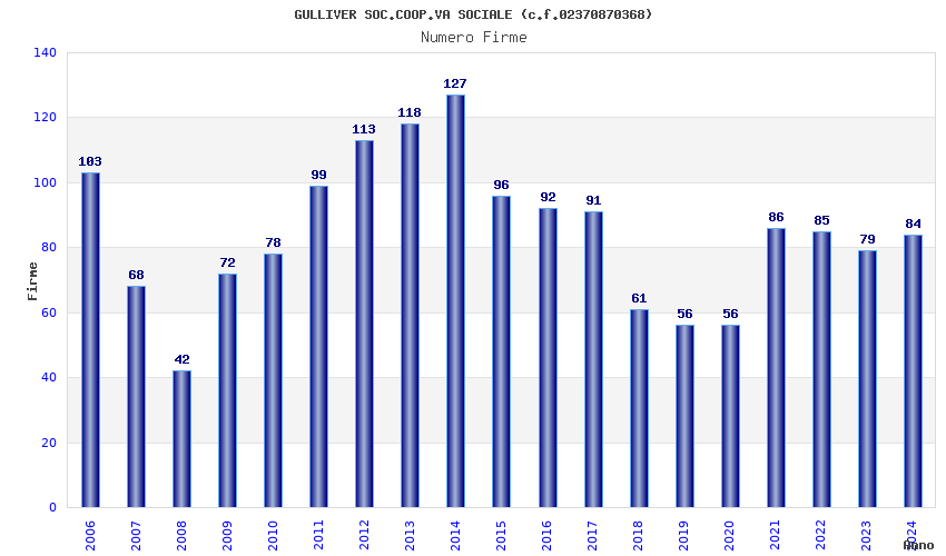 | Anno | Firme | Importi | Media | Naz. | Reg. | Prov. | Comu. |