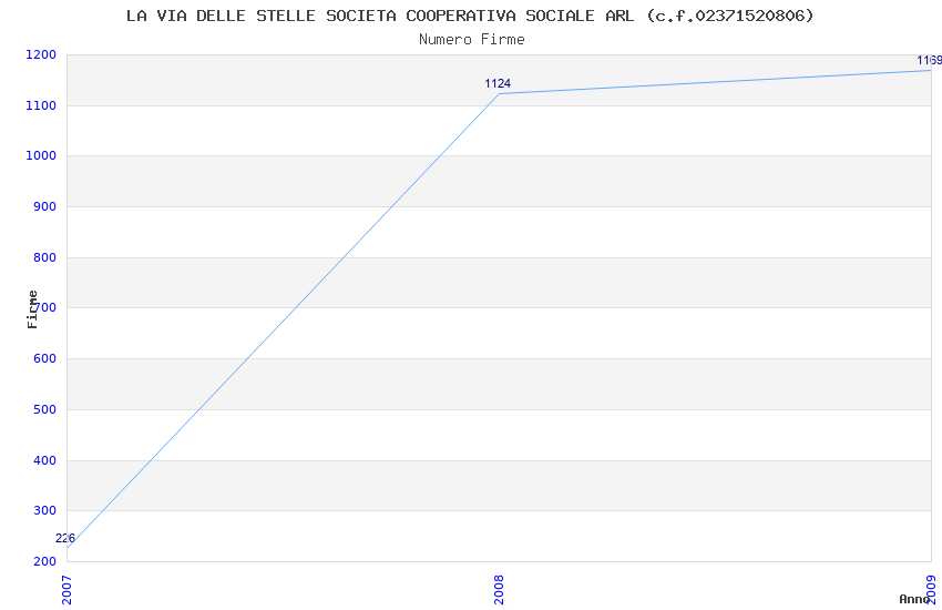 | Anno | Firme | Importi | Media | Naz. | Reg. | Prov. | Comu. |