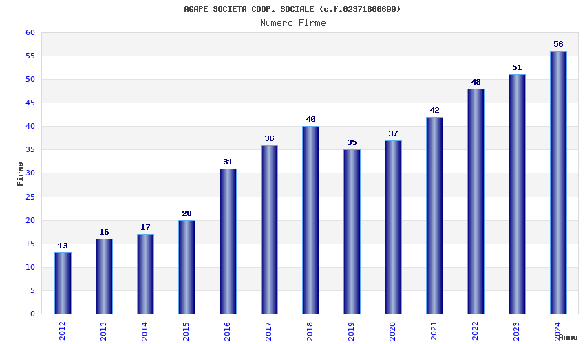 | Anno | Firme | Importi | Media | Naz. | Reg. | Prov. | Comu. |