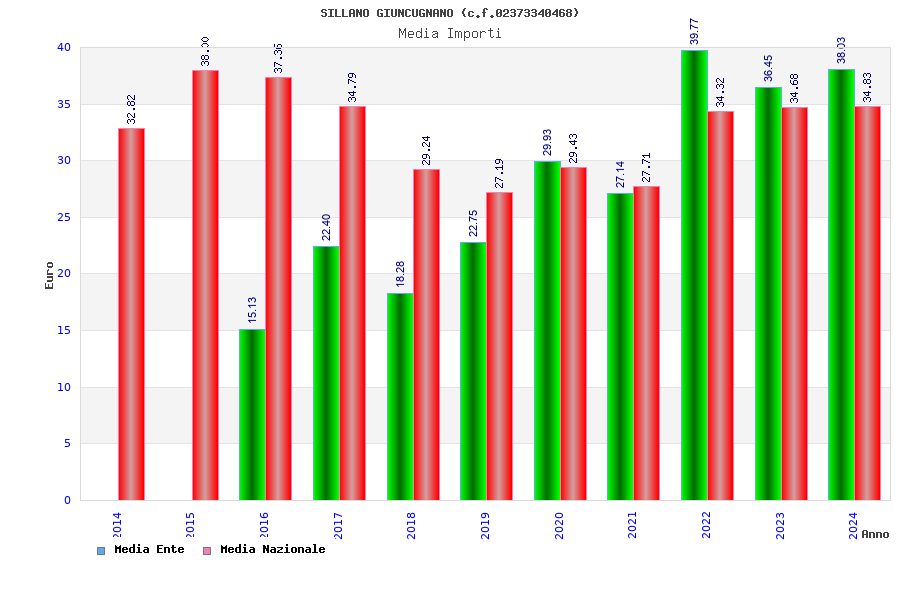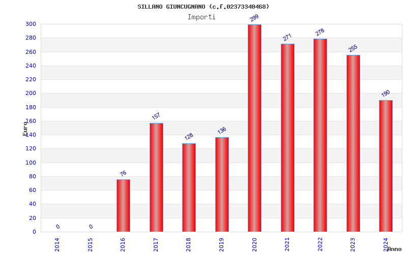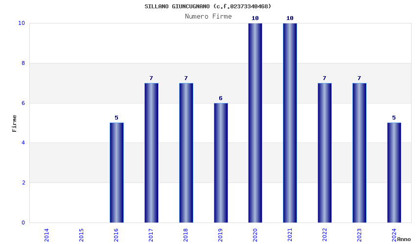 | Anno | Firme | Importi | Media | Naz. | Reg. | Prov. | Comu. |