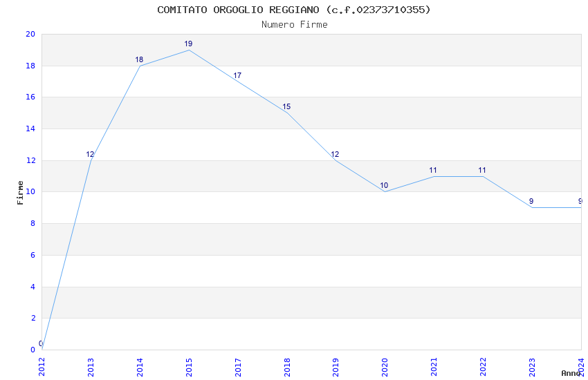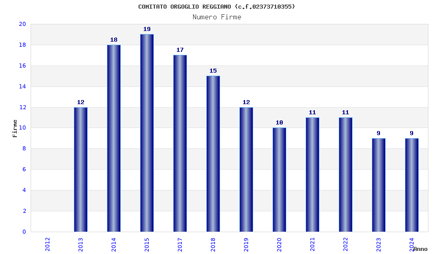 | Anno | Firme | Importi | Media | Naz. | Reg. | Prov. | Comu. |