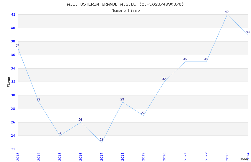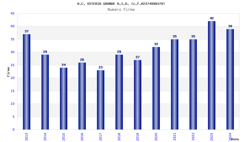 | 2024 | 39 | 2.233,67 | 57,27 | 22.116 | 1.917 | 477 | 8 |