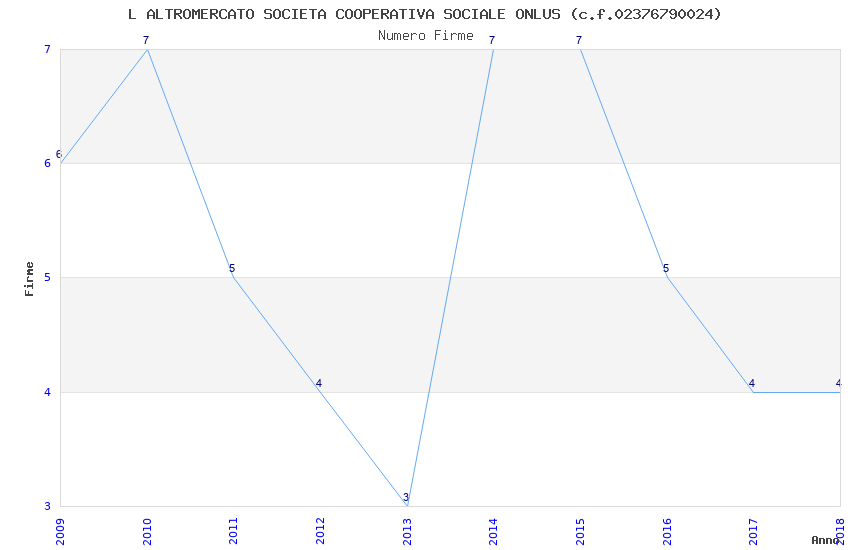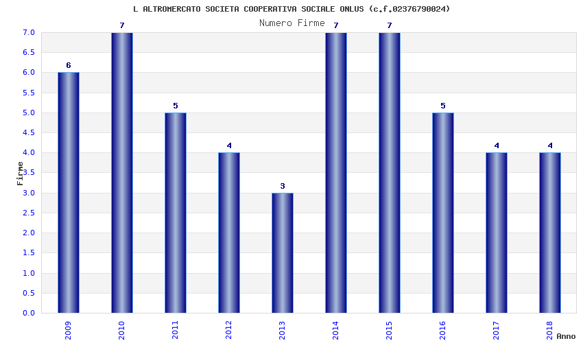 | Anno | Firme | Importi | Media | Naz. | Reg. | Prov. | Comu. |