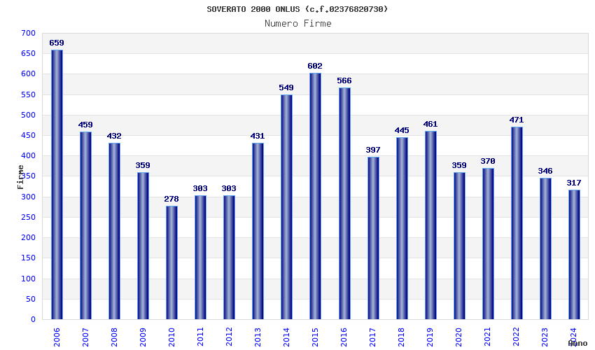 Anno Firme Importi Media Naz. Reg. Prov. Comu.