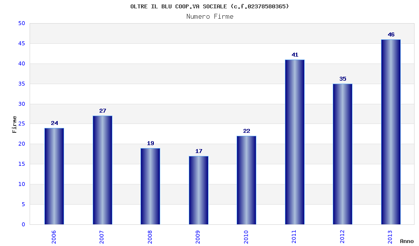 | Anno | Firme | Importi | Media | Naz. | Reg. | Prov. | Comu. |