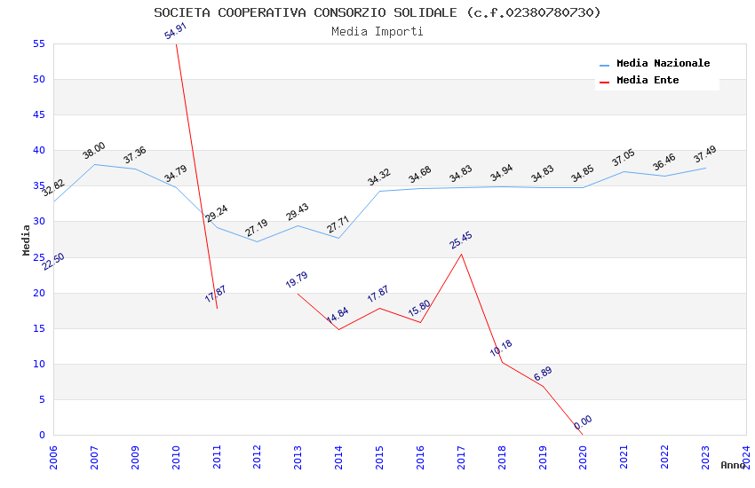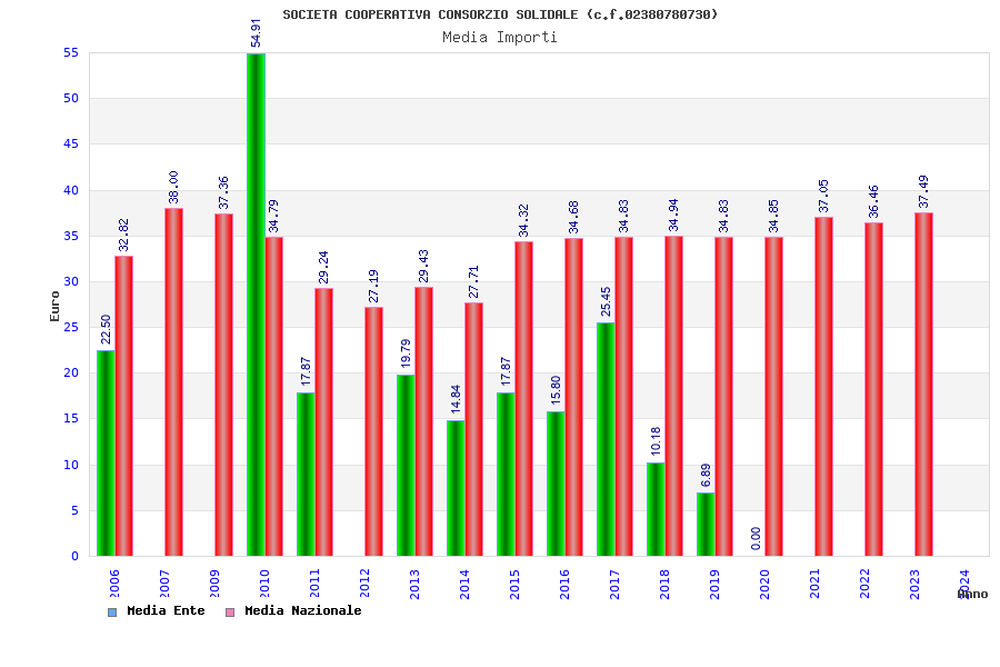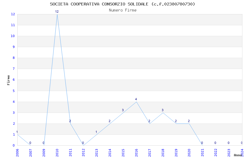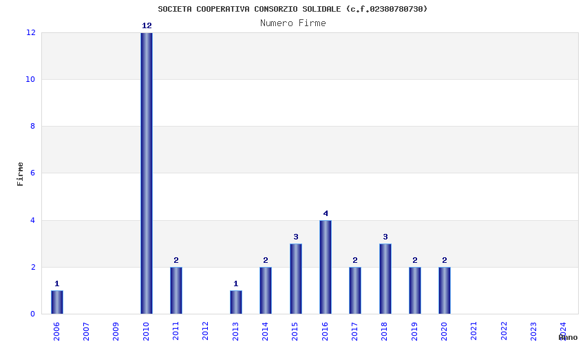 | Anno | Firme | Importi | Media | Naz. | Reg. | Prov. | Comu. |