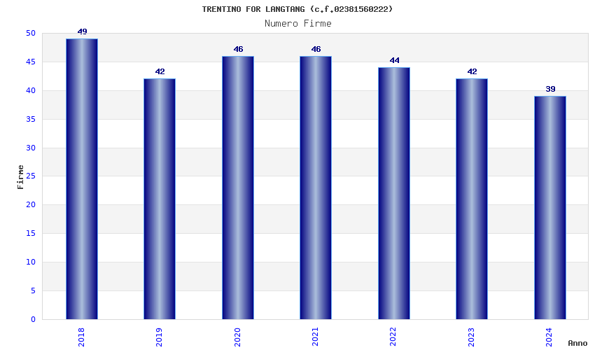 | Anno | Firme | Importi | Media | Naz. | Reg. | Prov. | Comu. |