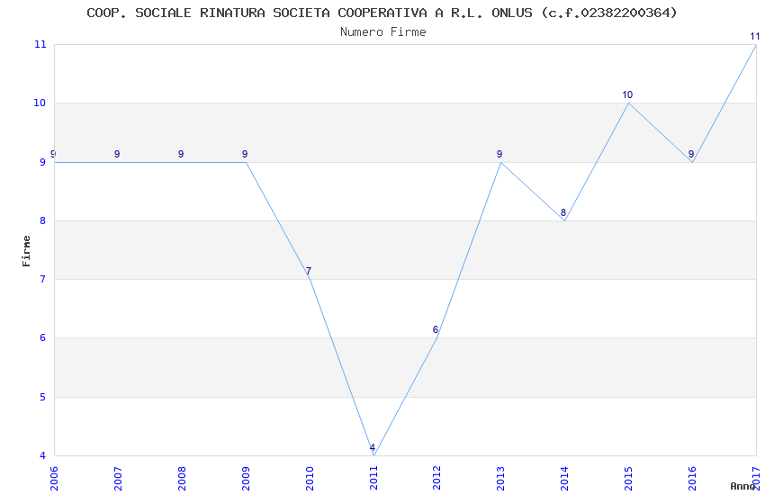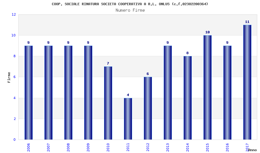 | Anno | Firme | Importi | Media | Naz. | Reg. | Prov. | Comu. |