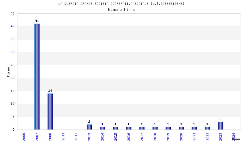 | Anno | Firme | Importi | Media | Naz. | Reg. | Prov. | Comu. |