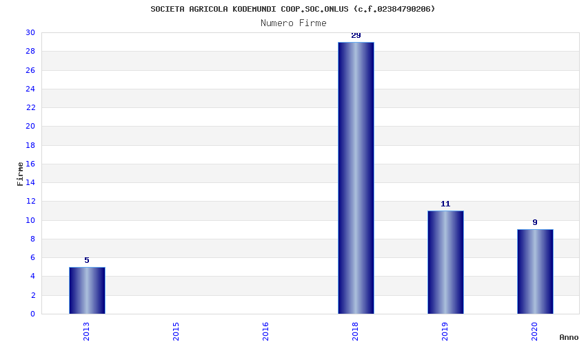 | Anno | Firme | Importi | Media | Naz. | Reg. | Prov. | Comu. |