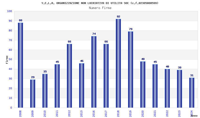 | Anno | Firme | Importi | Media | Naz. | Reg. | Prov. | Comu. |