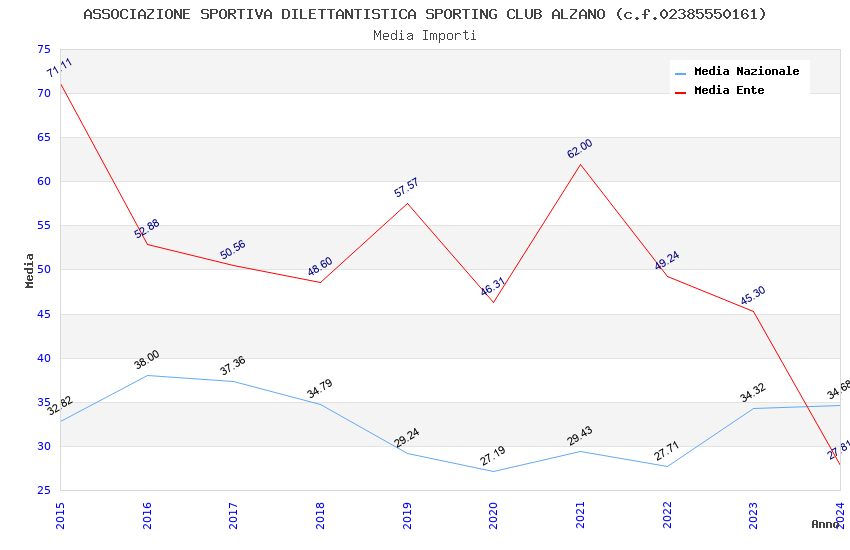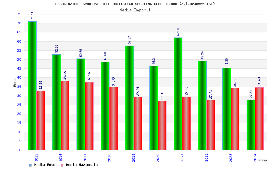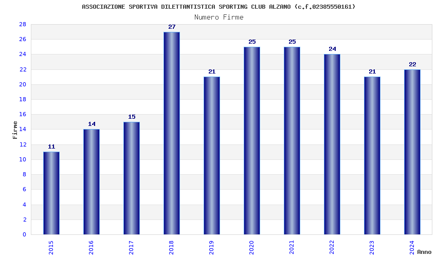 | Anno | Firme | Importi | Media | Naz. | Reg. | Prov. | Comu. |