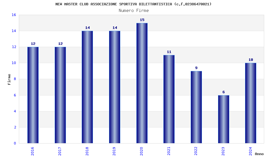 | Anno | Firme | Importi | Media | Naz. | Reg. | Prov. | Comu. |