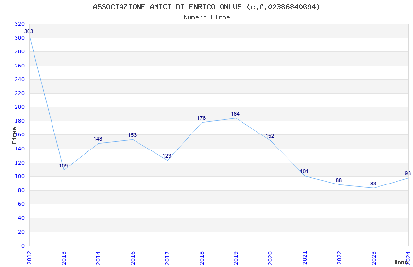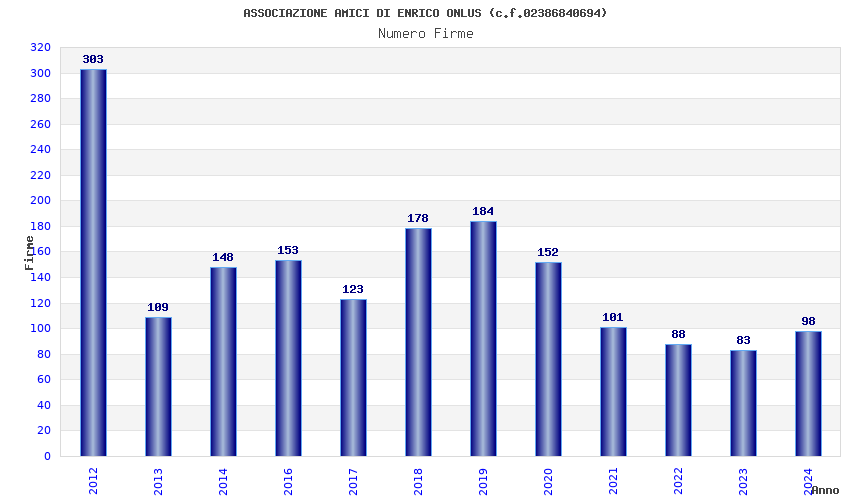 | Anno | Firme | Importi | Media | Naz. | Reg. | Prov. | Comu. |