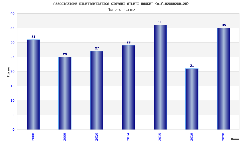 | Anno | Firme | Importi | Media | Naz. | Reg. | Prov. | Comu. |