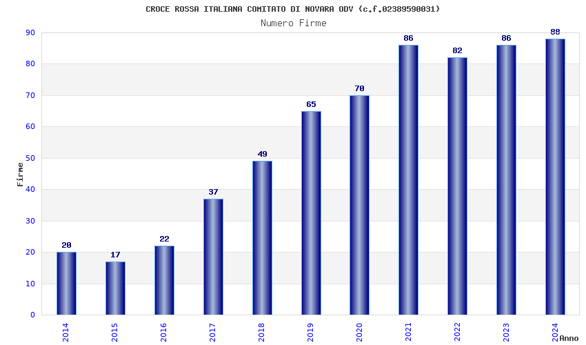| Anno | Firme | Importi | Media | Naz. | Reg. | Prov. | Comu. |