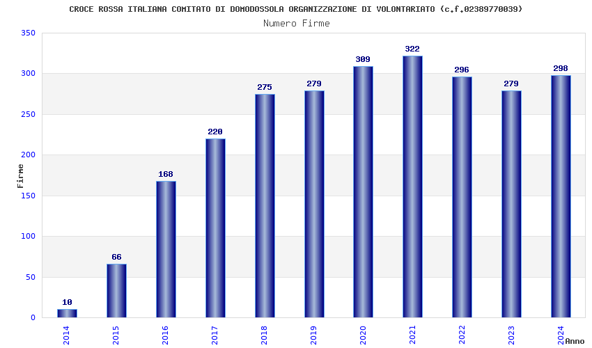 | Anno | Firme | Importi | Media | Naz. | Reg. | Prov. | Comu. |