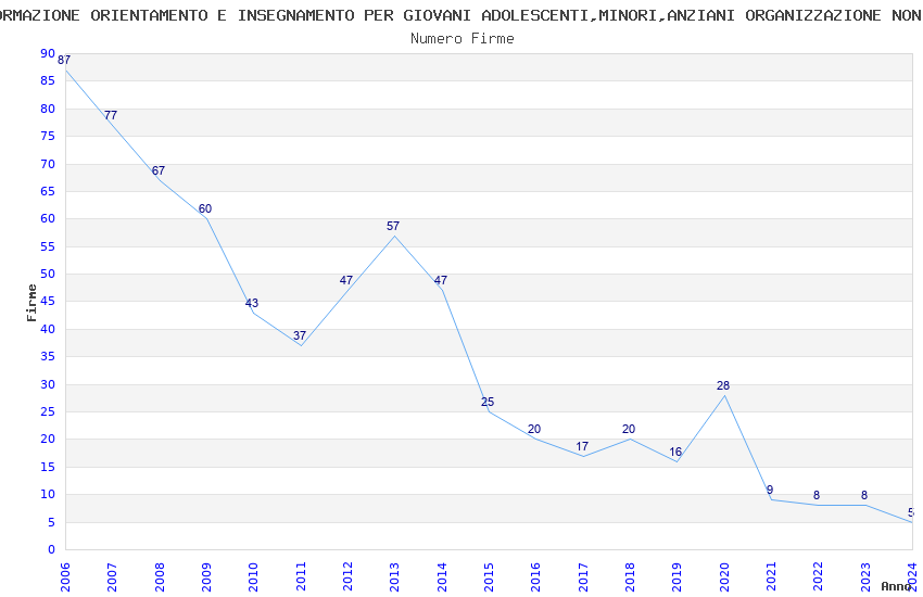 | Anno | Firme | Importi | Media | Naz. | Reg. | Prov. | Comu. |