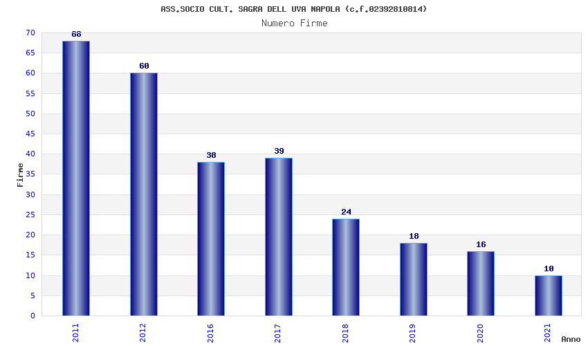 | Anno | Firme | Importi | Media | Naz. | Reg. | Prov. | Comu. |