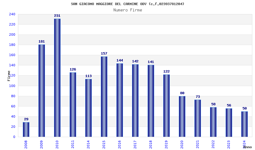 | Anno | Firme | Importi | Media | Naz. | Reg. | Prov. | Comu. |