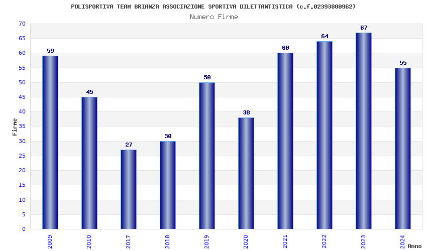 | 2023 | 67 | 4.650,80 | 69,41 | 11.566 | 2.637 | 237 | 8 |