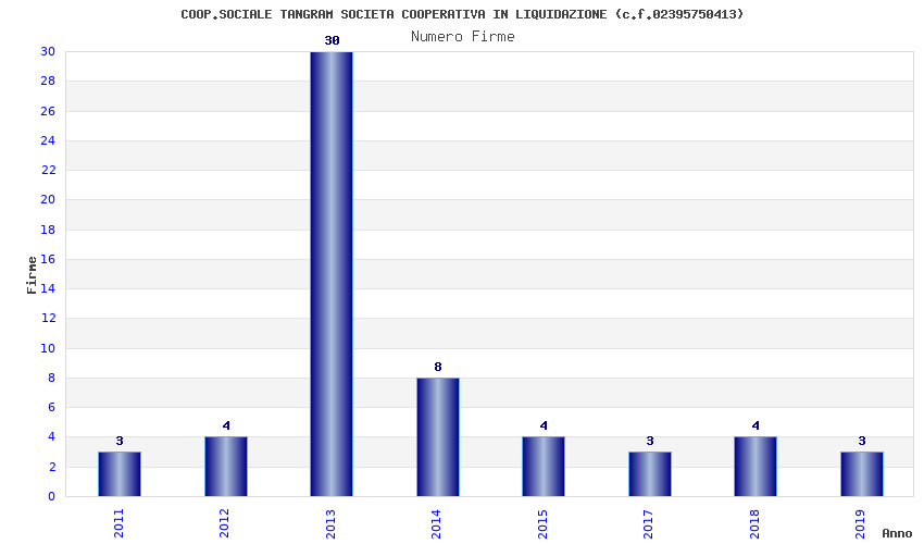 | Anno | Firme | Importi | Media | Naz. | Reg. | Prov. | Comu. |