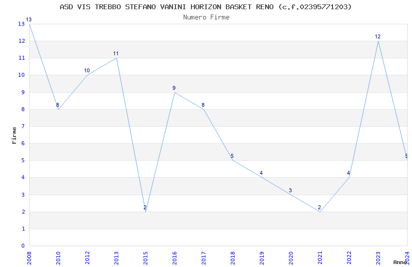 | Anno | Firme | Importi | Media | Naz. | Reg. | Prov. | Comu. |