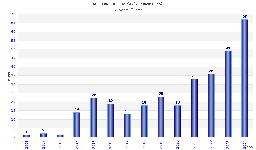 | Anno | Firme | Importi | Media | Naz. | Reg. | Prov. | Comu. |
