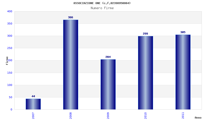 | Anno | Firme | Importi | Media | Naz. | Reg. | Prov. | Comu. |