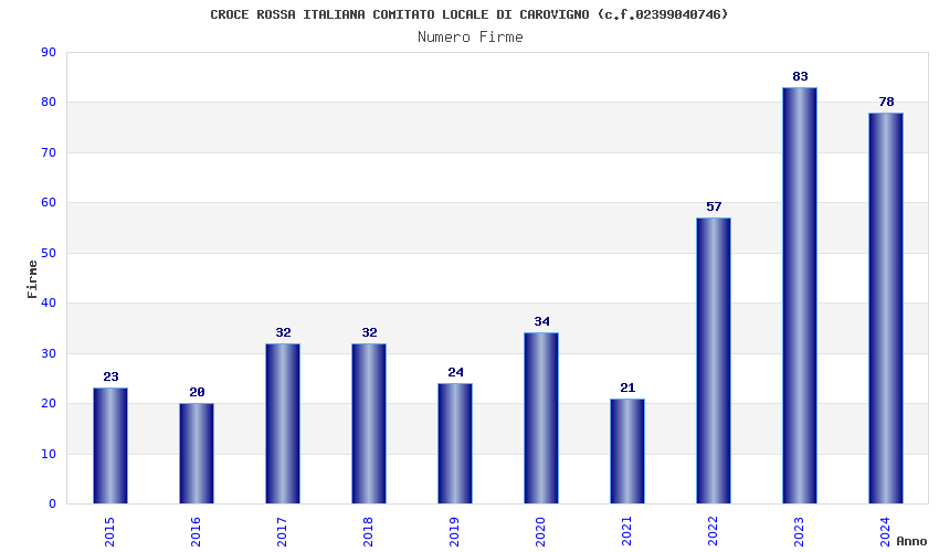| Anno | Firme | Importi | Media | Naz. | Reg. | Prov. | Comu. |