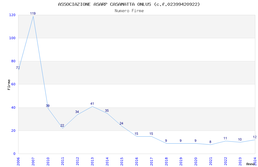 | 2006 | 72 | 2.701,33 | 37,52 | 12.810 | 222 | 85 | 54 |