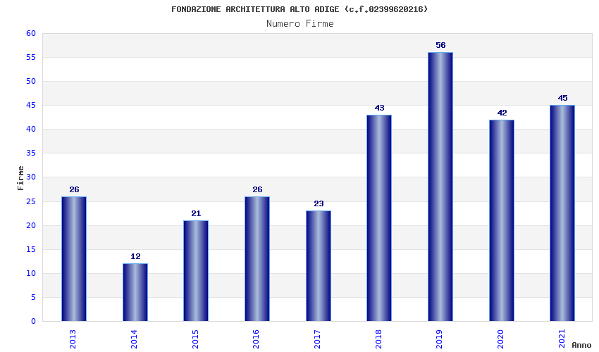 | Anno | Firme | Importi | Media | Naz. | Reg. | Prov. | Comu. |