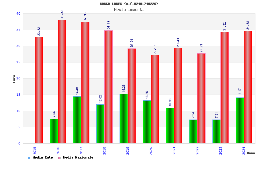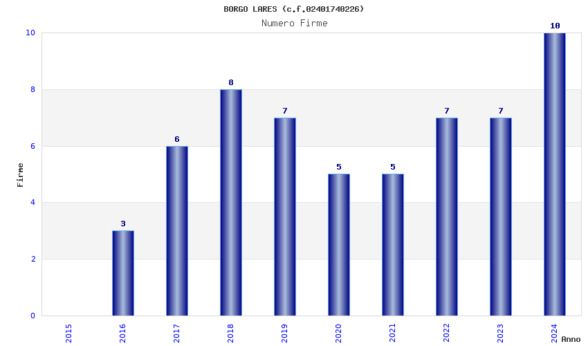 | Anno | Firme | Importi | Media | Naz. | Reg. | Prov. | Comu. |