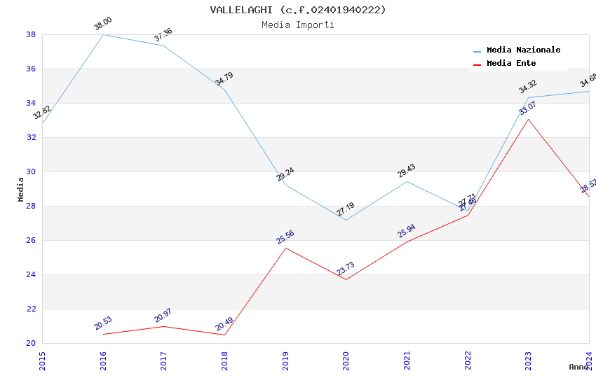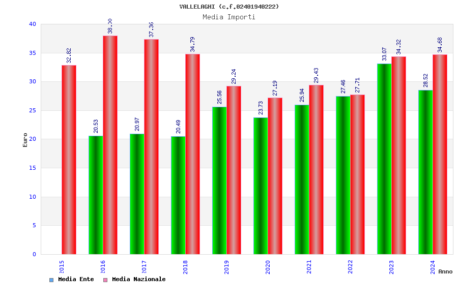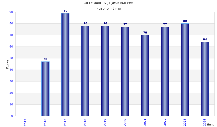 | Anno | Firme | Importi | Media | Naz. | Reg. | Prov. | Comu. |
