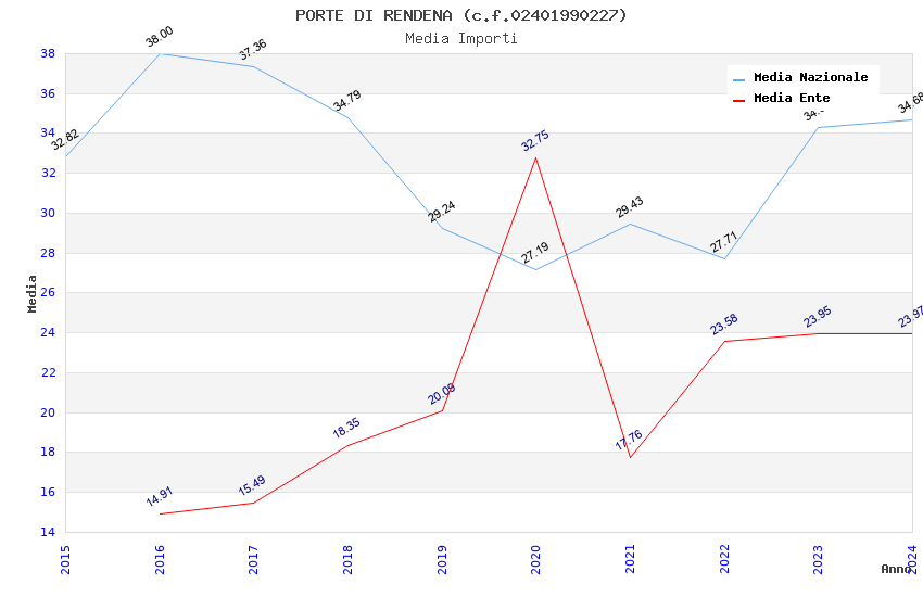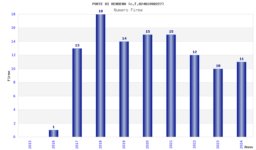 | Anno | Firme | Importi | Media | Naz. | Reg. | Prov. | Comu. |